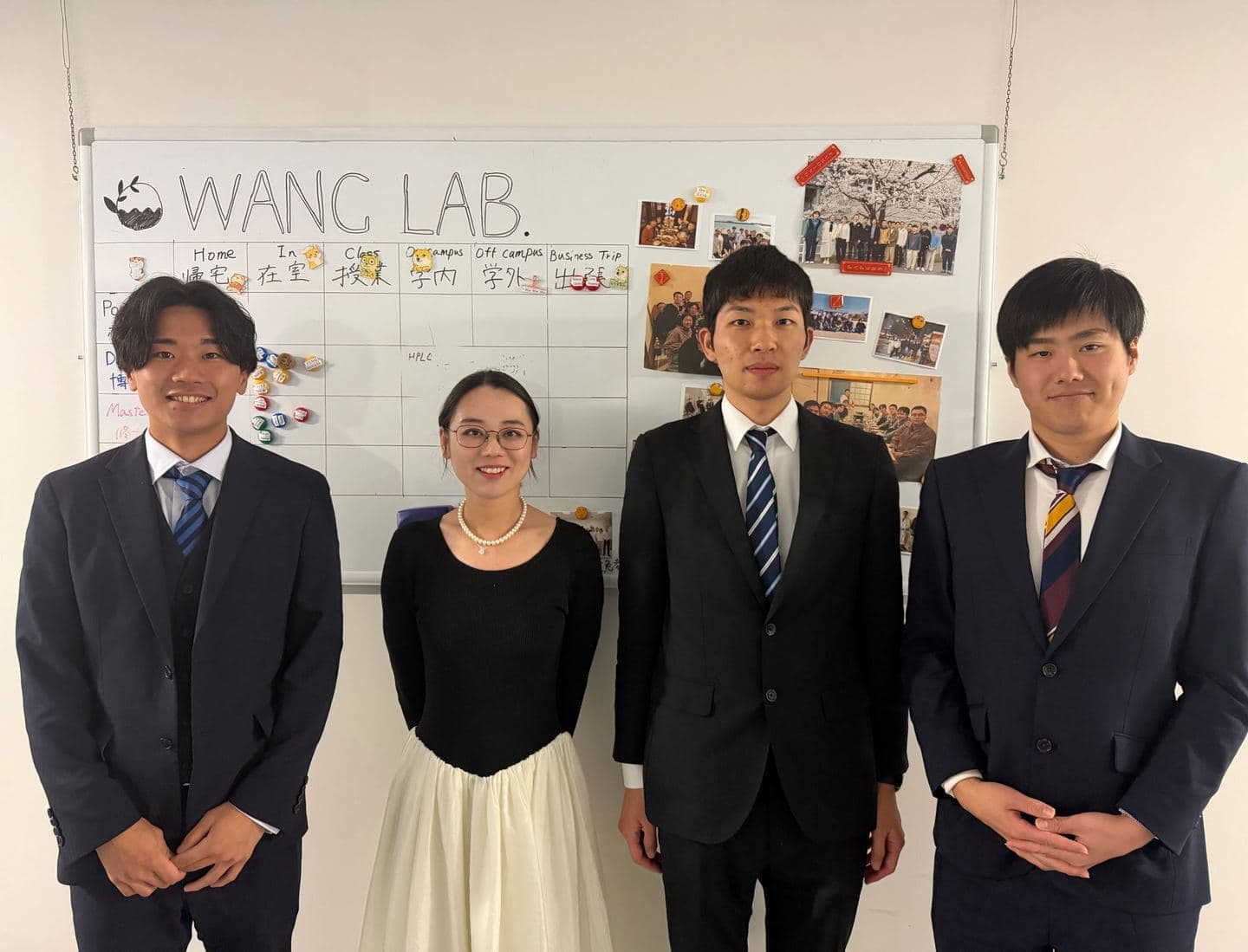 Group photos Sakura! Wang lab had a party in December The bigger group under Sakura! 2023.4.10Group photo in April of 2023 2022.11.11Group photo in December of 2022Onuki was absent becauce of business 2022.4.19Group photo in April of 2022 2021.4Group photo in April of 2021 Graduation🎓 Congratulation! Chinese fooooooood! Happy graduation! 2022.3.25Onuki and Morita have graduated and been awarded "Excellent Presentation".Big congratulations! Conference Sakurai (D1) recieved the Best Poster Award at the Third Solar Chemical Network Symposium held in Southampton, UK Makino (M1) attended Pacifichem 2025 in Hawaii Sakurai is presenting his research at the 245th ECS meeting in San Francisco! Visitor Professor Domen visited our lab. Students from NUS visited our group! Welcome! Award 🎊 2022.12 2022.12 「最優秀賞」!Congratulations! Lab life This is the coffee brewing tool that everyone is using The result is a draw