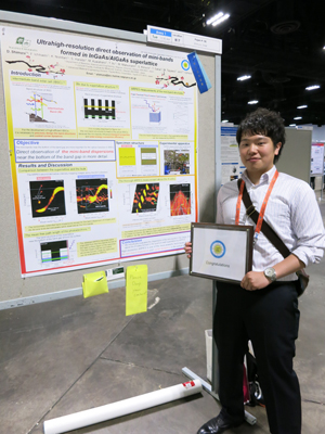 6/16-21にアメリカ・フロリダ州で開催された39th IEEE Photovoltaic Specialists ConferenceにてD2市橋君とM2志村君がポスター発表を行い、M2志村君がBest Poster Awardを受賞しました。